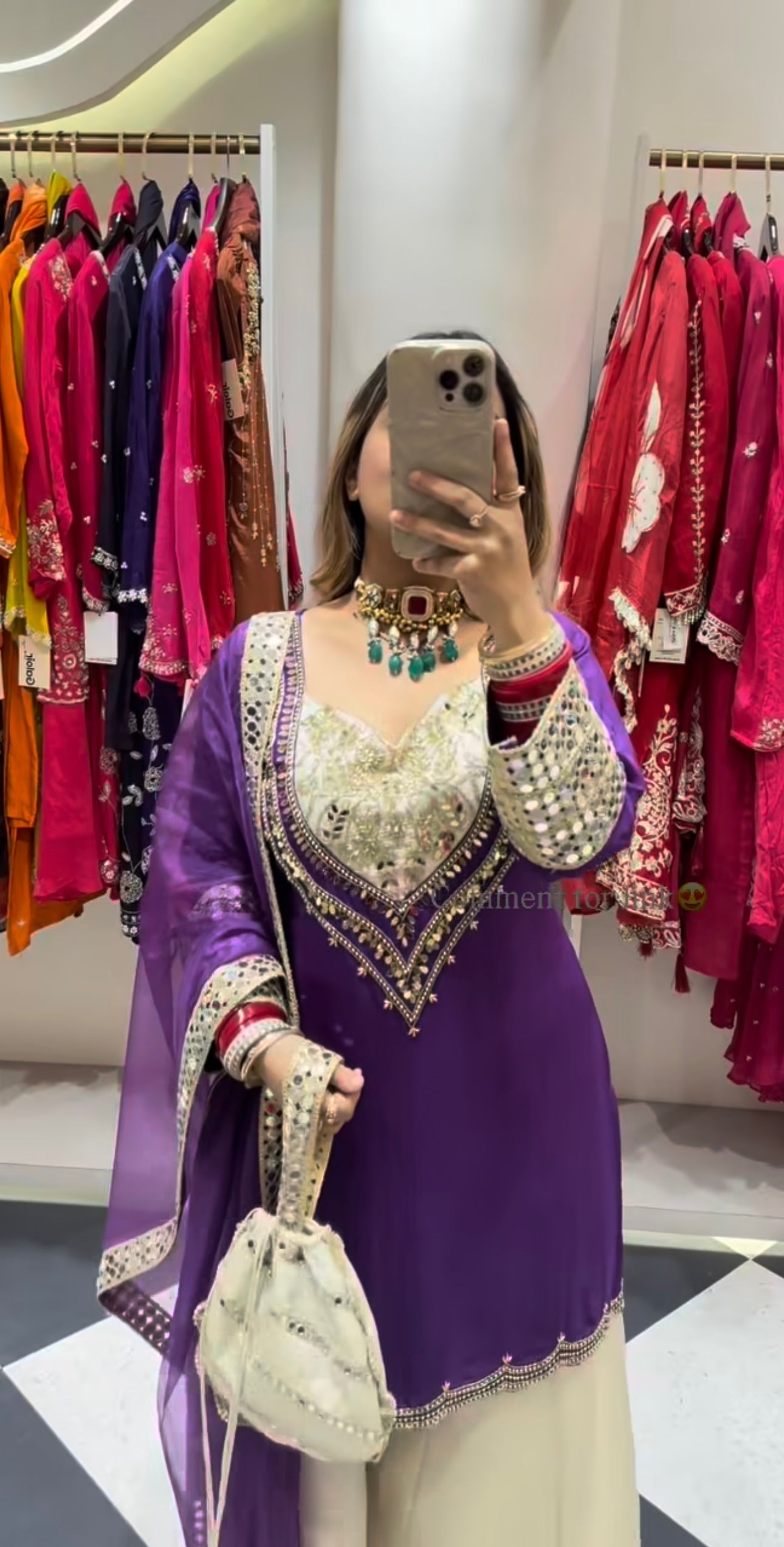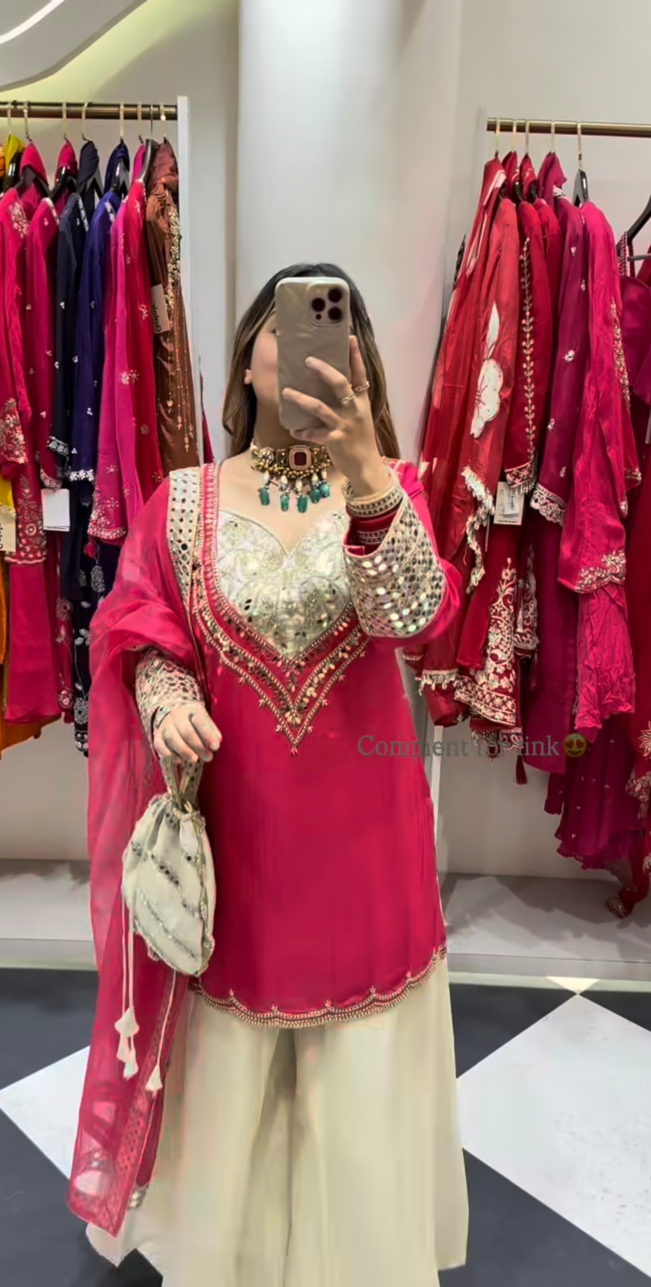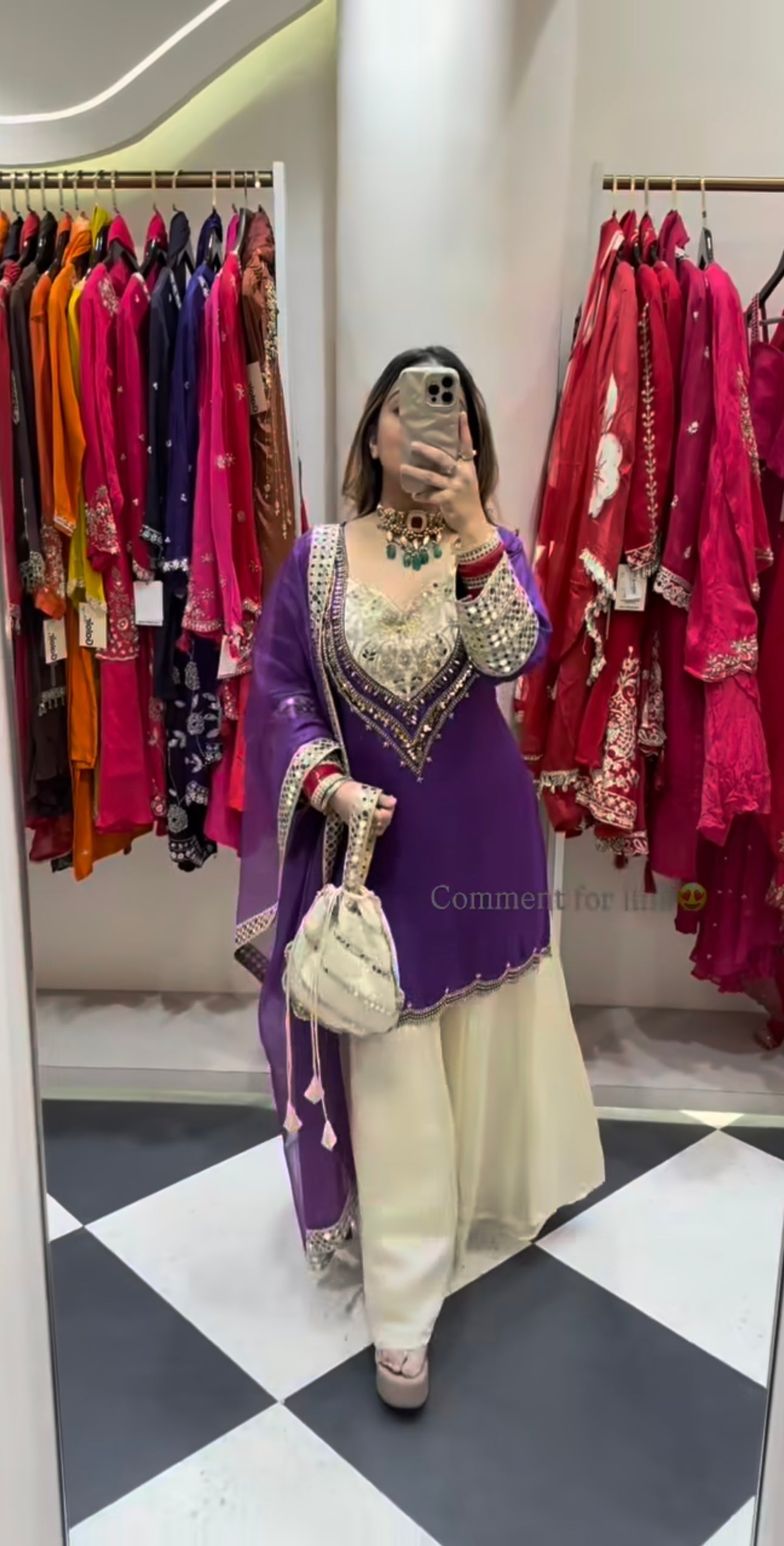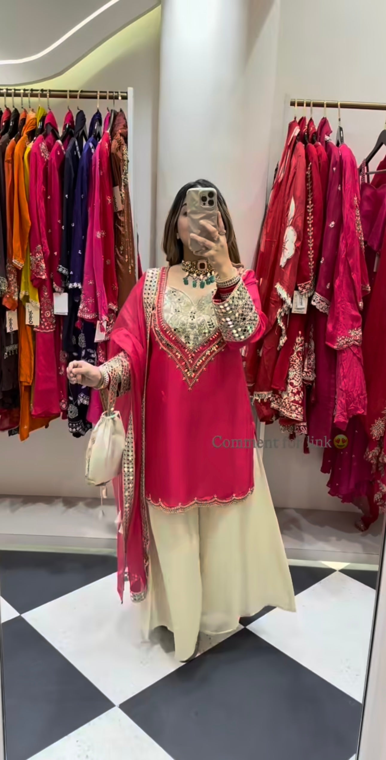 Step into timeless elegance with “Bandagi”, a luxurious 3-piece ensemble crafted in rich Natural Crepe with original 12mm mirror work embroidery. Perfect for weddings, parties, and festive occasions, this outfit is where regal charm meets effortless comfort. 💃👑